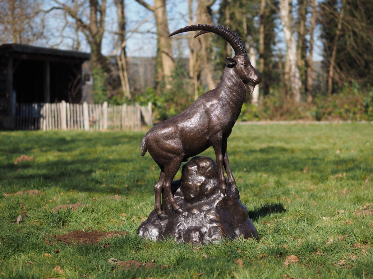 Mit der Bronzeskulptur „Bergziege neben einer Felsenfigur“ erwerben Sie nicht nur eine wunderschöne Ergänzung für Ihre Sammlung, sondern auch ein Stück Ewigkeit, das über Generationen hinweg erstrahlen wird.