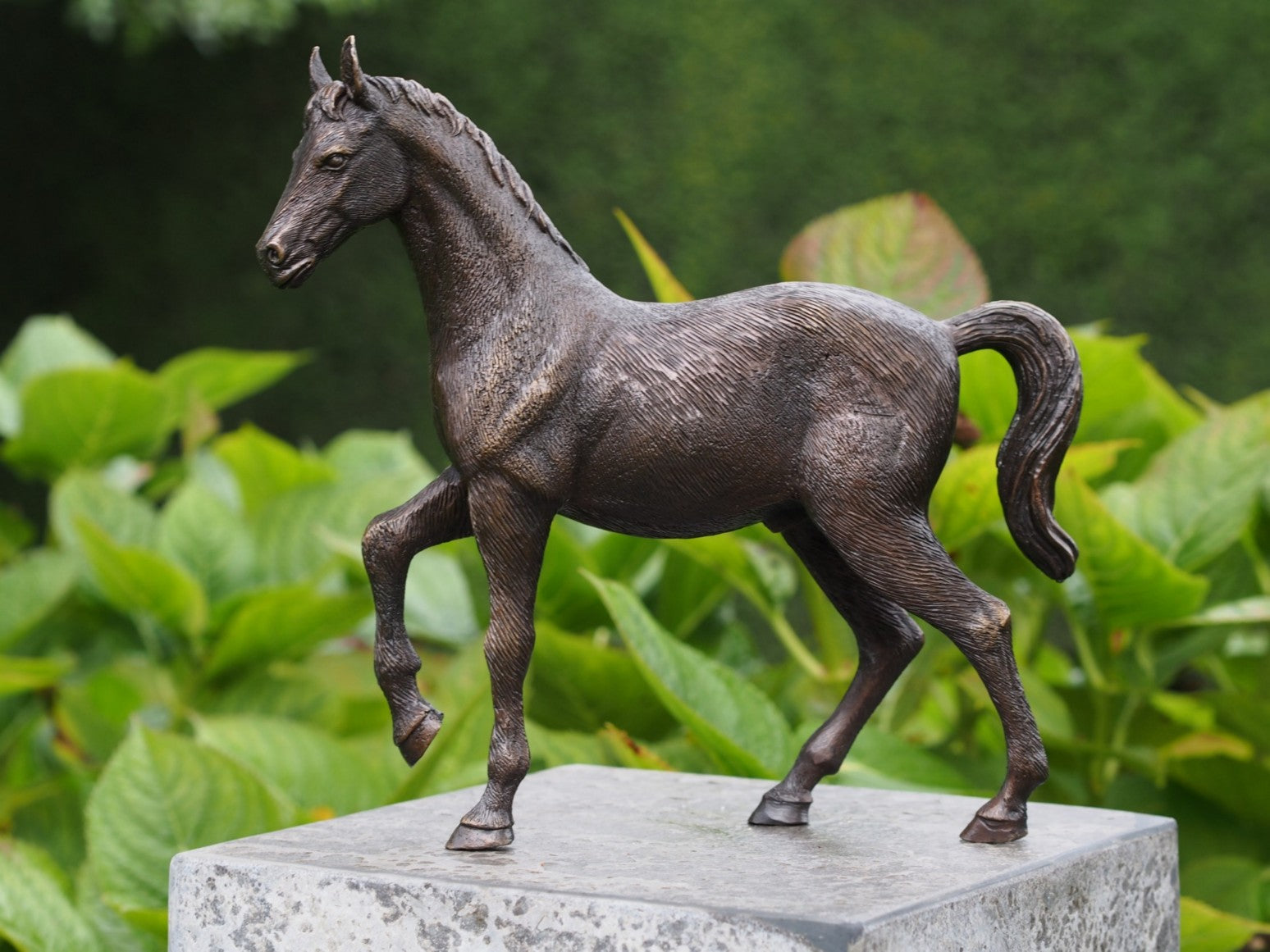 Suchen Sie eine Bronzestatue, die nicht nur schön, sondern auch zeitlos ist? Die Bronzestatue „Pferd“ ist ein Meisterwerk der führenden belgischen Marke. Dieses exklusive Kunstwerk vereint Ästhetik und Langlebigkeit und verleiht jedem Raum einen Hauch von Eleganz. Für alle, die ein zeitloses Stück suchen, das Generationen überdauert, ist dies die perfekte Wahl. Einzigartige Patina und außergewöhnliche Qualität Die Statue zeichnet sich durch ihre lebendige Patina aus, die durch ein sorgfältiges chemisches Verfahren entsteht. Dieses verwandelt die natürliche gelbe oder kupferfarbene Bronze in satte Farbtöne wie Dunkelbraun, Grün oder Schwarz. Dadurch erhält jede Statue ein einzigartiges Aussehen und wird zum Blickfang in jedem Ambiente. Ob drinnen oder draußen – sie bleibt ein beeindruckendes Kunstwerk. Pflegeleicht, langanhaltende Schönheit Trotz der Robustheit von Bronze ist die Pflege einfach. Um die schöne Patina zu erhalten, empfehlen wir, die Statue zweimal jährlich leicht mit farblosem Wachs einzureiben. Vogelkot sollte zudem umgehend mit lauwarmem Wasser und einem weichen Schwamm entfernt werden. So bleibt Ihre Statue Jahr für Jahr in Topform.