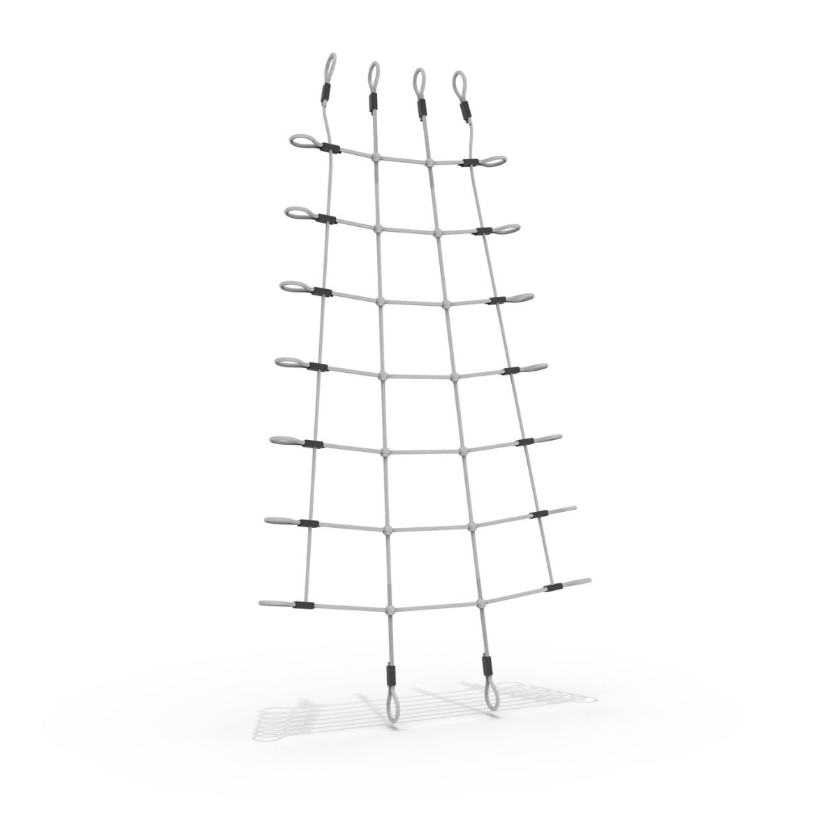 Das Kletternetz hat die Maße 100 x 210 cm und besteht aus stabilem 12 mm dickem Polyesterseil. Dieses Material ist verschleißfest, formstabil und beständig gegen den dauerhaften Einsatz im Außenbereich. Gleichzeitig fühlt es sich glatt und weich an – ideal für Kinderhände, die gerne greifen und hängen. Durch die hellgraue Farbe wirkt das Netz zudem ruhig und fügt sich harmonisch in jede Gartenumgebung ein.