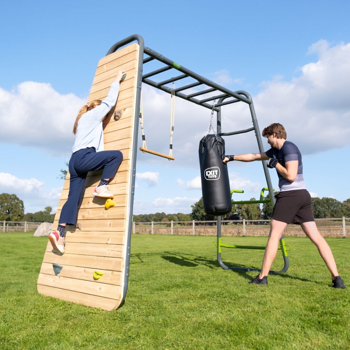 Trotz seines kompletten Charakters nimmt das MB220 überraschend wenig Platz ein. Das Gerät passt in nahezu jeden Garten und lässt sich leicht selbst montieren. Mit dem EXIT GetSet MB220 schaffen Sie in Ihrem Garten einen zentralen Ort für Bewegung, Spiel und Gesundheit – an dem jedes Familienmitglied seine eigene Herausforderung findet. Auf die Plätze, fertig, los!