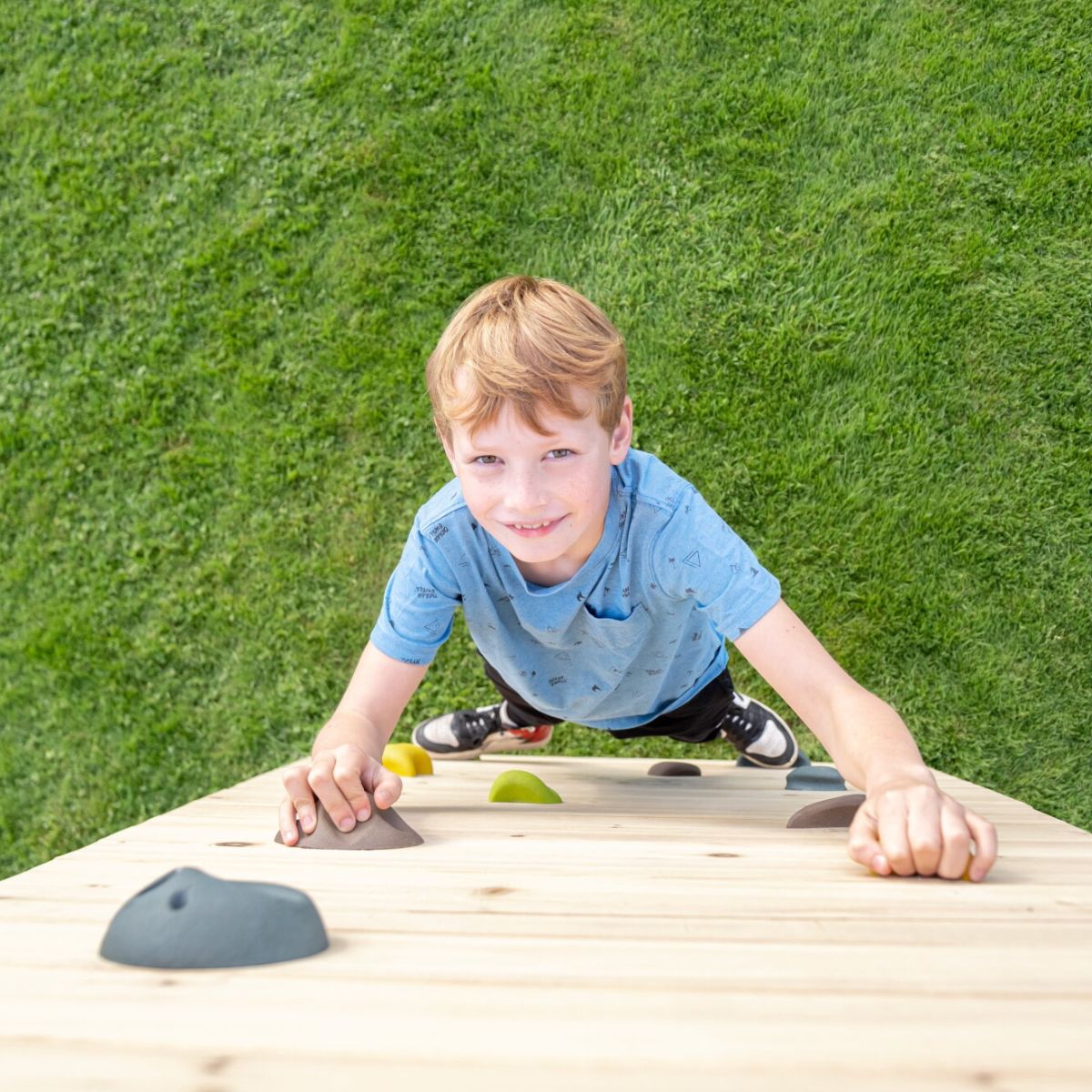 Kinder ab drei Jahren können sich auf dem GetSet MB220 austoben. Das Gerät ist standardmäßig mit einer Kletterwand, Griffen, Turnringen aus Holz und vielem mehr ausgestattet – ideal, um spielerisch und sicher Motorik und Muskelkraft zu entwickeln. Lassen Sie sie am Klettergerüst schaukeln, über Hindernisse klettern und ihre eigene Fantasiewelt zum Leben erwecken. Jeder Tag draußen wird zu einem neuen Abenteuer. Vergessen Sie nicht, vorher das Zubehör abzunehmen, wenn Sie das Klettergerüst nur als Klettergerüst nutzen möchten.