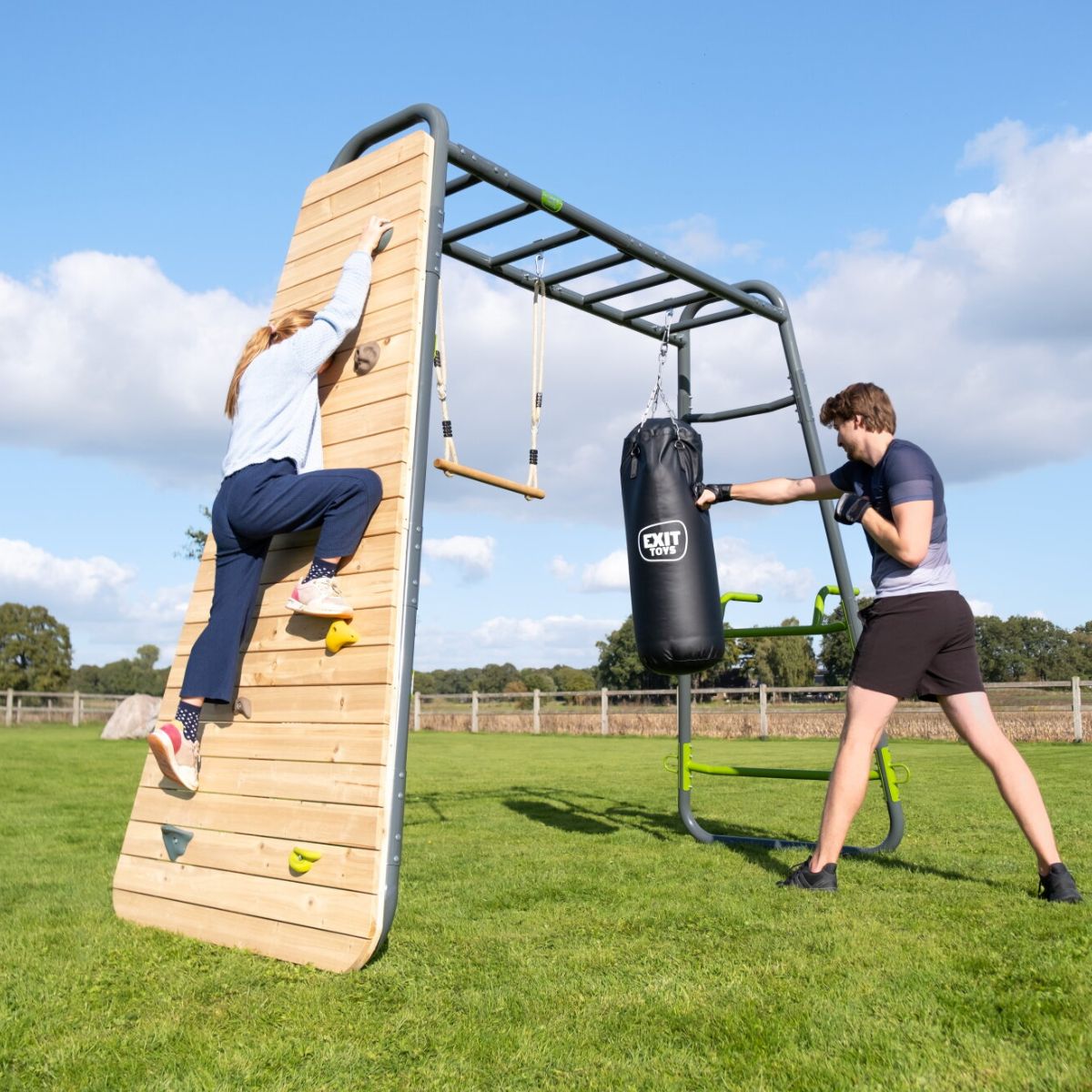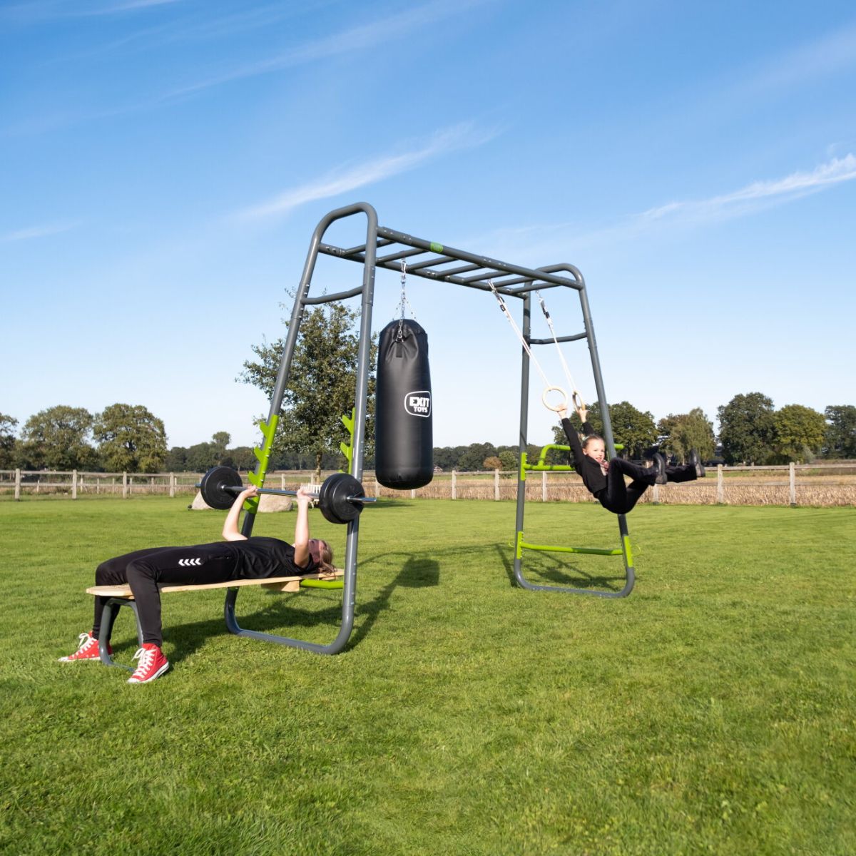 Möchten auch Sie als Eltern oder Sportbegeisterte von diesem Gerät profitieren? Kein Problem. Das EXIT GetSet MB200 lässt sich nahtlos in ein funktionales Fitness-Rack verwandeln. Trainieren Sie Ihre Arme, Schultern, Ihren Rücken oder Ihren Rumpf, indem Sie einfach unter dem Rahmen hängen und sich von Stange zu Stange bewegen. Ergänzen Sie Zubehör wie einen Boxsack oder eine Dip-Station und gestalten Sie Ihr persönliches Outdoor-Workout. So kannst du trainieren, wo und wann du willst – ohne Fitnessstudio-Mitgliedschaft.