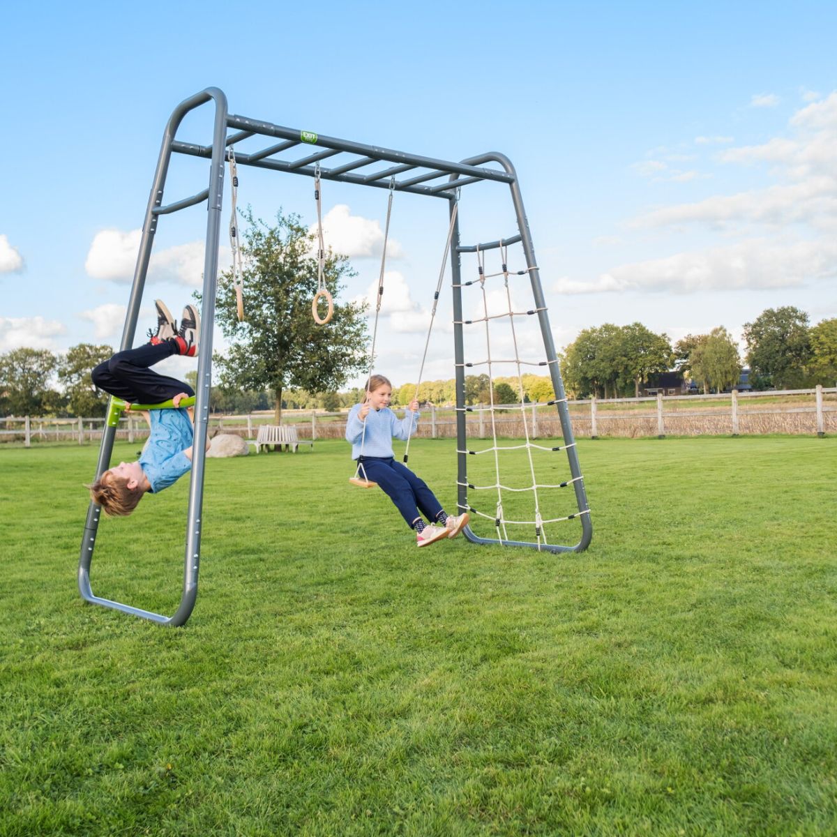Suchen Sie nach einer Möglichkeit, Ihre Kinder aktiv zu halten und im Freien spielen zu lassen, während Sie selbst in Topform bleiben – ohne das Haus verlassen zu müssen? Dann ist das EXIT GetSet Klettergerüst MB200 genau das Richtige für Sie. Dieses vielseitige Spiel- und Fitnessgestell ist für Familien konzipiert, die in Bewegung, Spaß und Zusammensein im Freien investieren möchten. Mit über drei Metern Kletter- und Trainingsmöglichkeiten verwandeln Sie Ihren Garten in einen echten Abenteuerpark und Ihr persönliches Outdoor-Fitnessstudio.