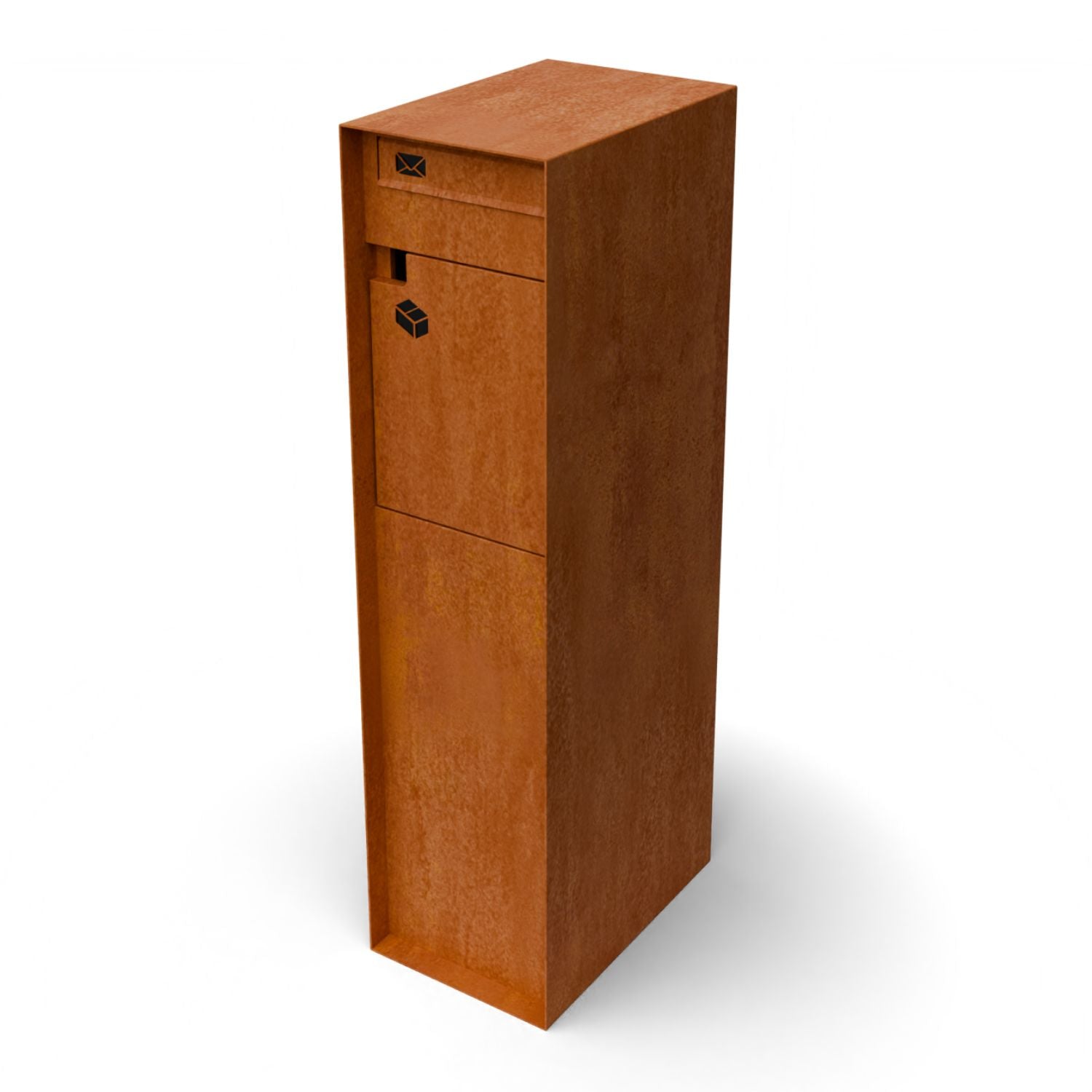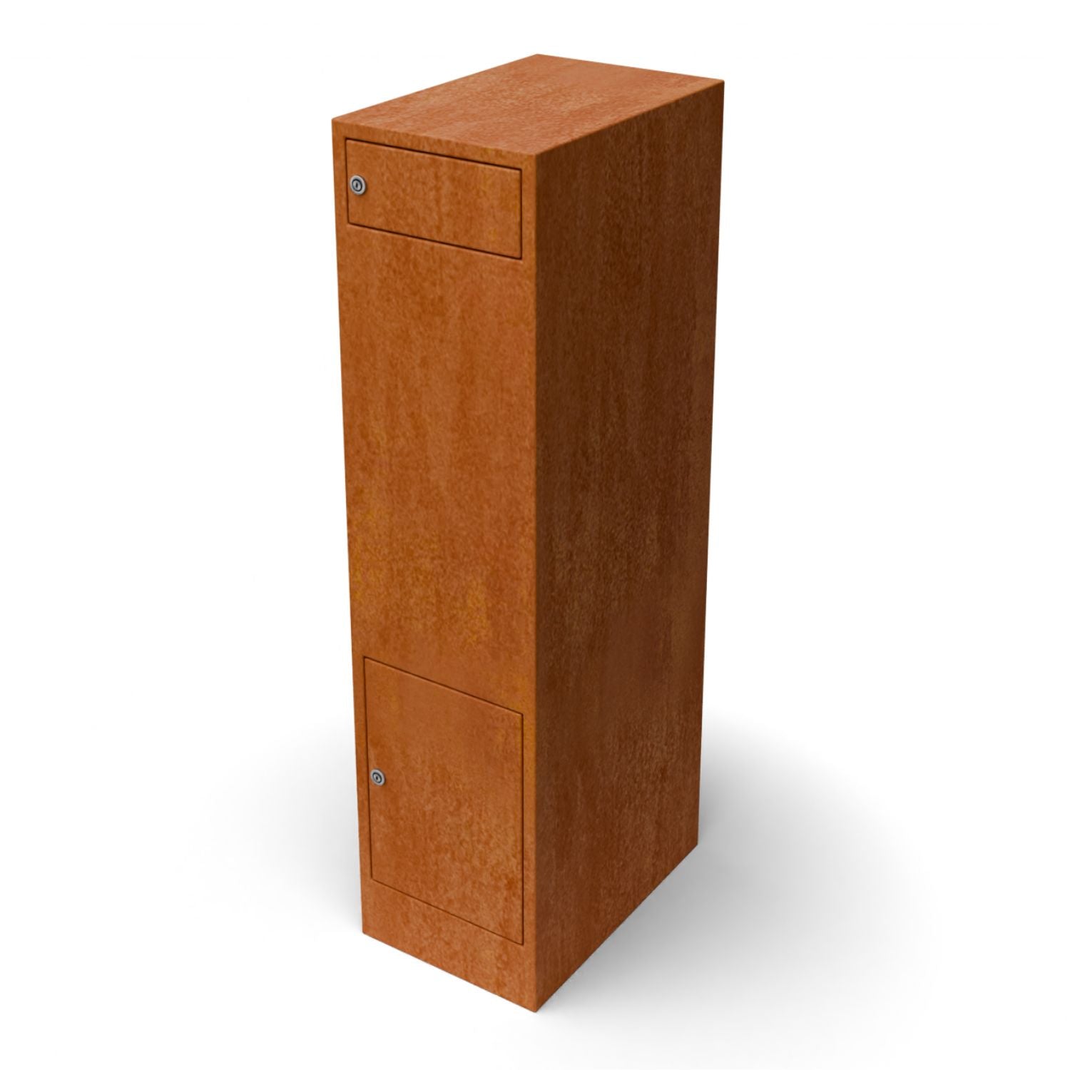 De twee meegeleverde sleutels zorgen voor directe toegang en transparante controle over het compartiment. De robuuste constructie met een materiaaldikte van 2 mm cortenstaal levert een lange levensduur op, ook bij intensief gebruik en variabele weersomstandigheden.