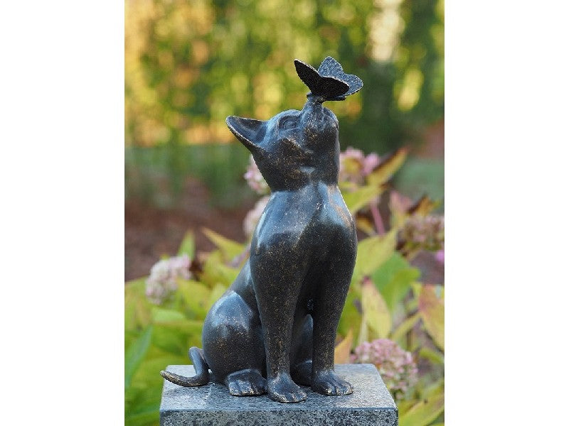 Bronzen beeld Kat met vlinder 38x16x25cm