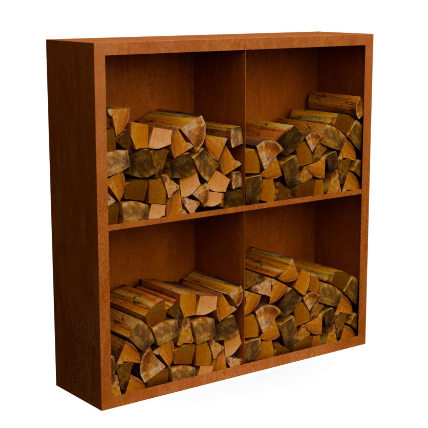 Ben je op zoek naar een cortenstalen houtopslag 150x38,5x150cm met 4 Vakken met achterwand en optimale waterafvoer om houtrot te voorkomen? Bestel dan direct deze houtopslag en geniet van een opgeruimde en stijlvolle tuin!