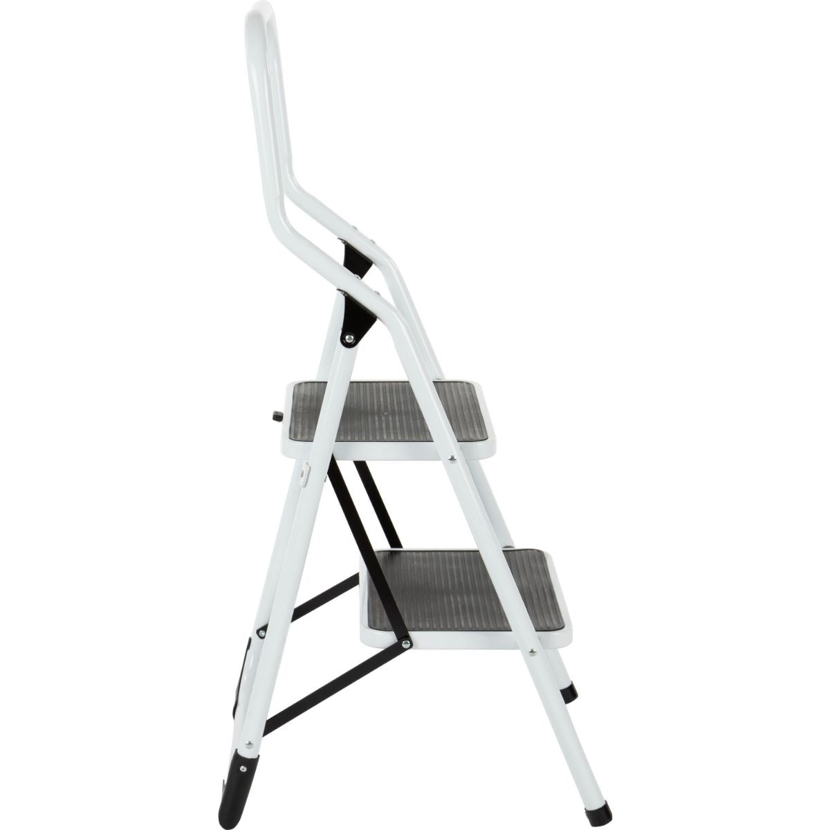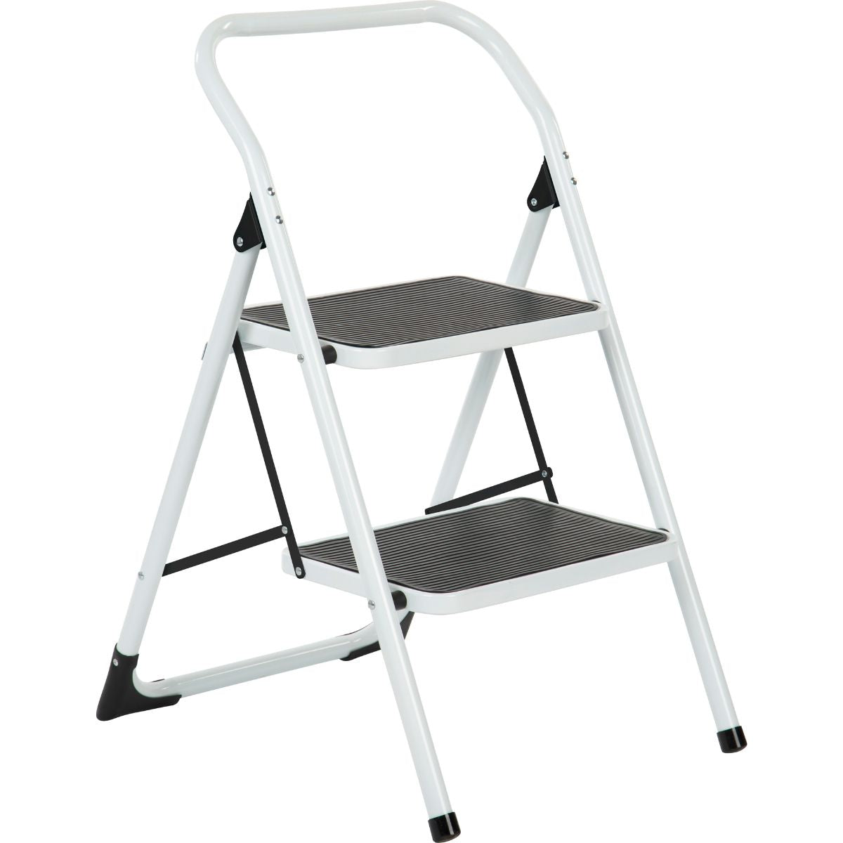 De trap is vervaardigd uit stevig staal en afgewerkt met een witte coating, waardoor hij niet alleen duurzaam is, maar ook een nette uitstraling heeft. Dankzij de compacte afmetingen is hij eenvoudig op te bergen na gebruik.