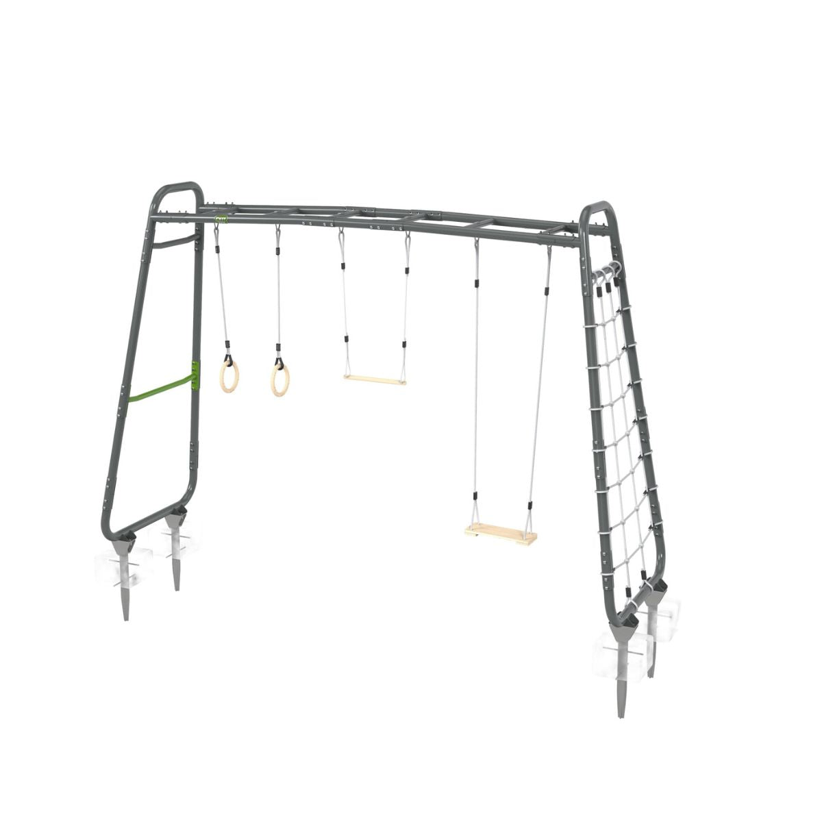 Of er nu één of meerdere kinderen tegelijk spelen, het toestel blijft stevig staan dankzij de verankeringsset (inclusief stappenplan, exclusief snelbeton). Dit zorgt voor maximale stabiliteit, zelfs bij intensief gebruik of winderig weer. Zo kun jij met een gerust hart je kinderen laten spelen en bewegen.