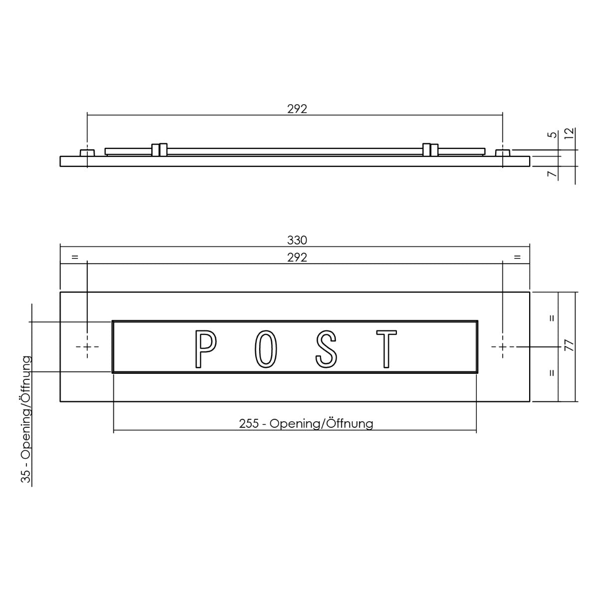 Deze rechthoekige brievenbus is vervaardigd uit messing en heeft een trommelbehandeling ondergaan. Omdat het product niet van een laklaag wordt voorzien versnelt het verouderingsproces en krijgt het product een natuurlijke matte en donkere uitstraling. De briefplaat heeft een geveerde klep die naar binnen draait. Door de verdekte montage heeft deze brievenbus een strakke afwerking. Op de klep staat het woord "POST" gegraveerd. Dit product wordt per stuk geleverd inclusief bevestigingsmateriaal voor montage. Brievenbus|Bevestigingsmateriaal voor montage