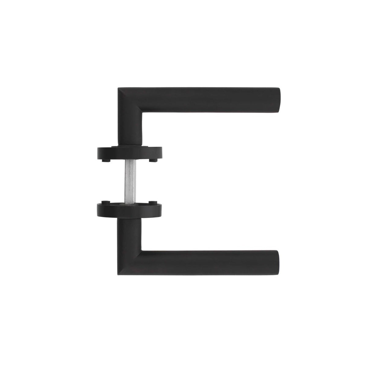 Deurkruk Bastian op rond rozet is uitgevoerd in de trendy kleur mat zwart. De rozet is voorzien van nokken, waardoor hij beter op zijn plek wordt gehouden. Deze deurkruk wordt per paar geleverd inclusief bevestigingsmateriaal. Deurkruk op rozet|Bevestigingsmateriaal voor montage