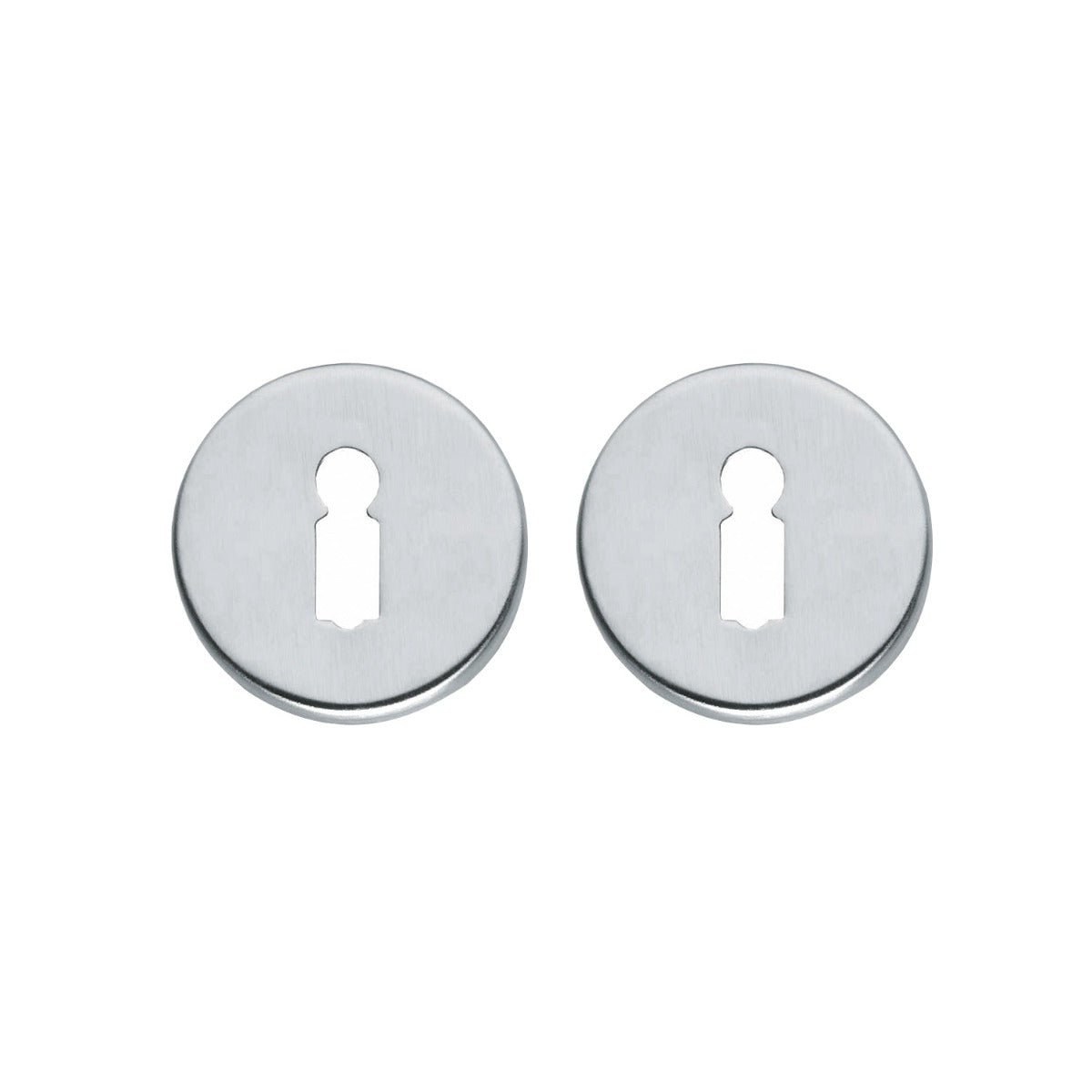Deze ronde rozet met sleutelgat is uitgevoerd in chroom en is naderhand geborsteld, waardoor het een matte uitstraling krijgt. Daarnaast is dit rozet voorzien van schroefgaten. Het voordeel van losse rozetten is dat u eindeloos kunt combineren met deurkrukken op rozet.
