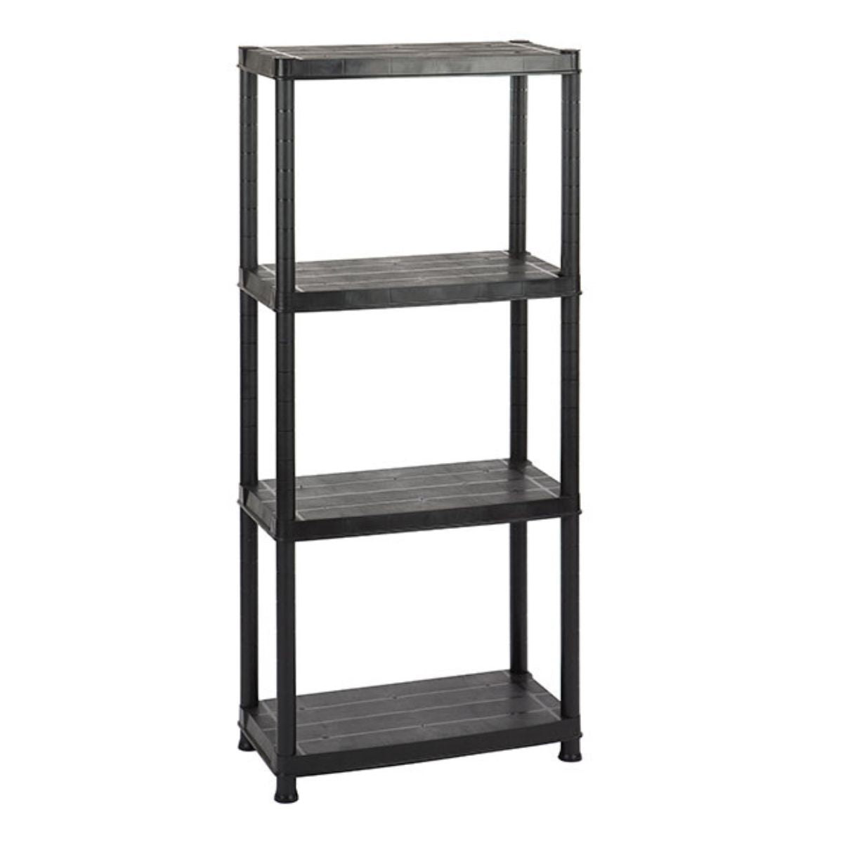 Ben je op zoek naar een licht, stevig én onderhoudsvriendelijk opbergrek? Dit zwarte kunststof rek met vier legborden is dé ideale oplossing voor het opbergen van spullen in vochtige of praktische ruimtes zoals de garage, wasruimte, kelder of tuinberging. Dankzij de eenvoudige montage zonder gereedschap staat dit rek binnen enkele minuten stevig op zijn plaats.