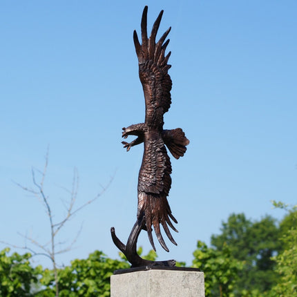 Avec la statue en bronze Flying Eagle 122x28x42cm (HxLxL), vous choisissez non seulement un bel ajout à votre collection, mais aussi une pièce d'éternité qui continuera à briller pendant des générations.