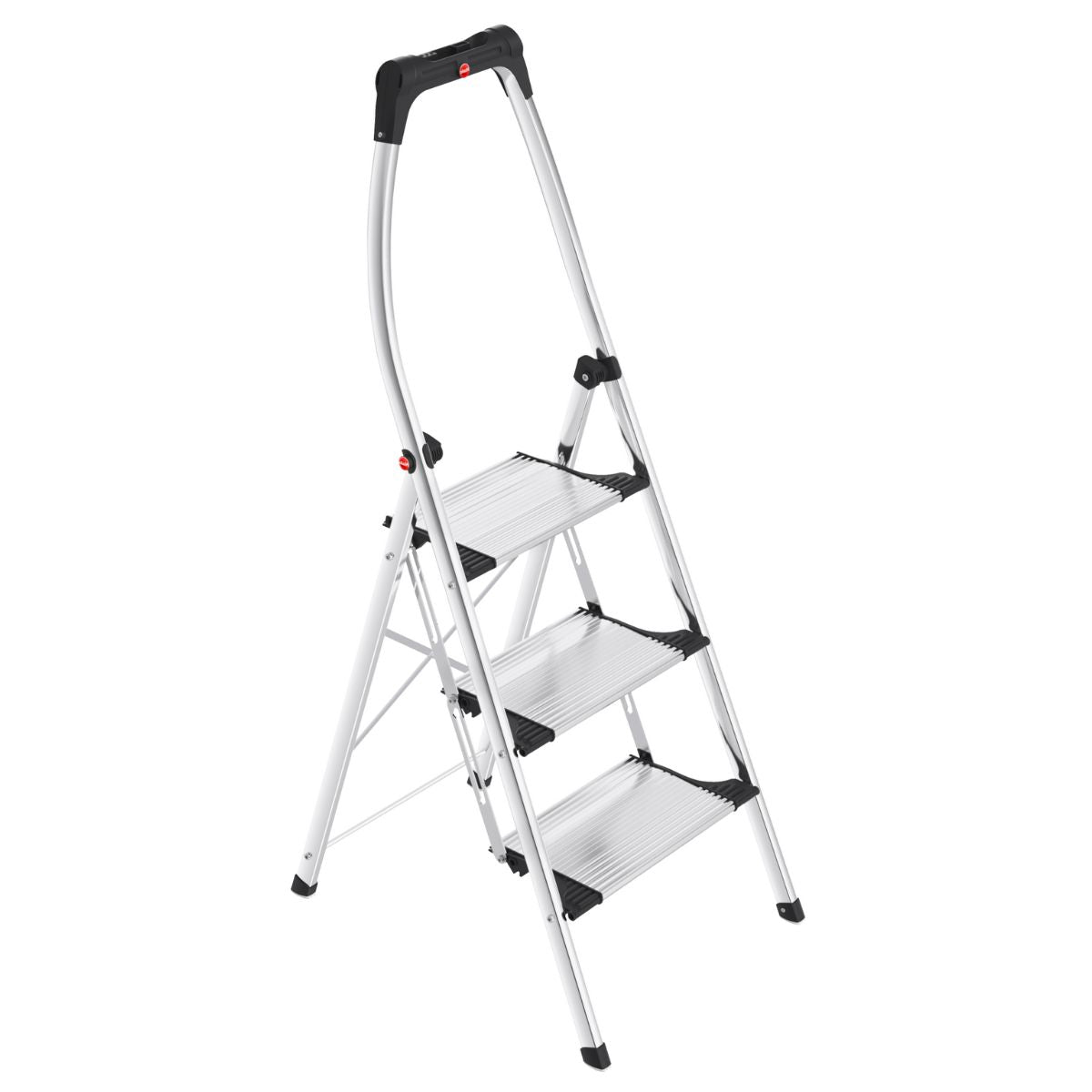 Avec 3 marches et une hauteur de travail allant jusqu'à 274 cm, l'escabeau est idéal pour la plupart des tâches ménagères ; pour des applications encore plus hautes, un modèle plus grand peut être plus pratique.