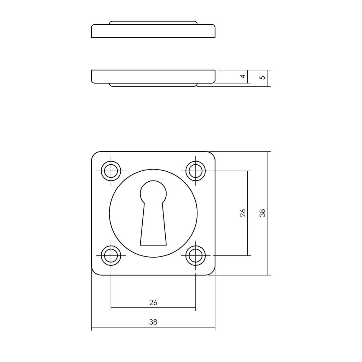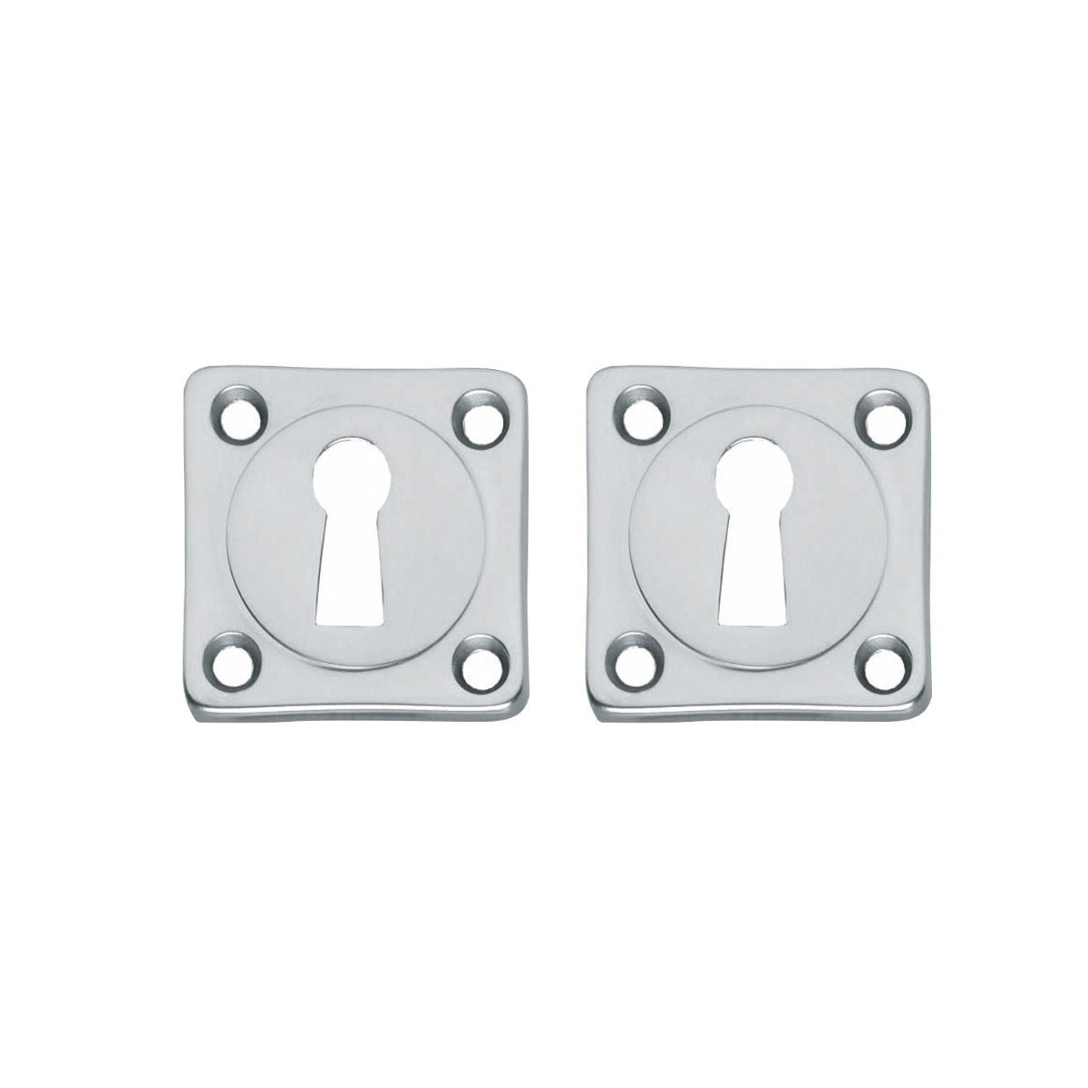 Ces rosaces carrées avec trou de serrure sont réalisées en chrome et sont ensuite brossées, ce qui leur donne un aspect mat. De plus, cette rosace est munie de trous de vis. L'avantage des rosaces séparées est que vous pouvez les combiner à l'infini avec des poignées de porte sur une rosace.