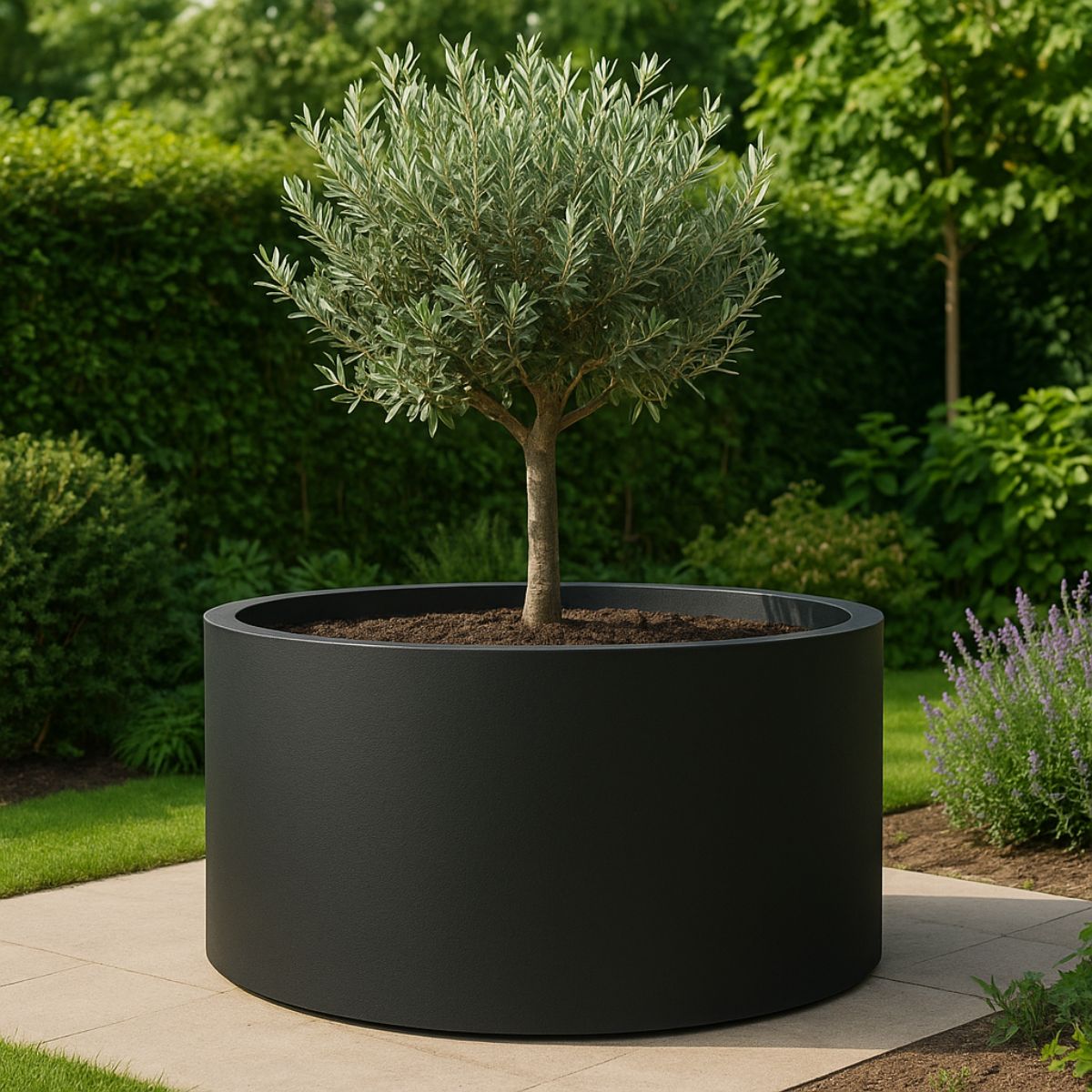 Commandez dès aujourd'hui votre jardinière ronde en polyester Ø 150x60 cm Noir de jais (RAL 9005) !