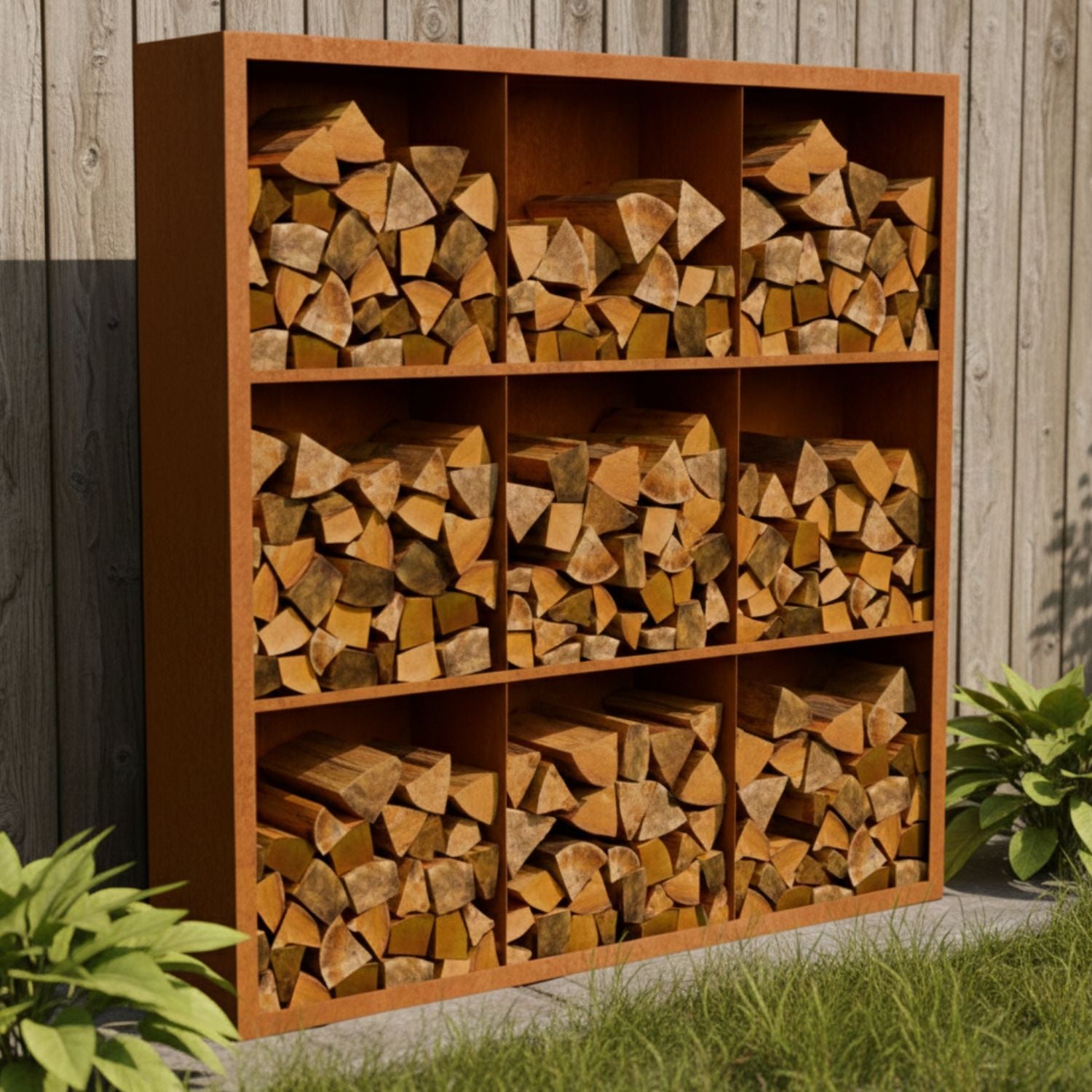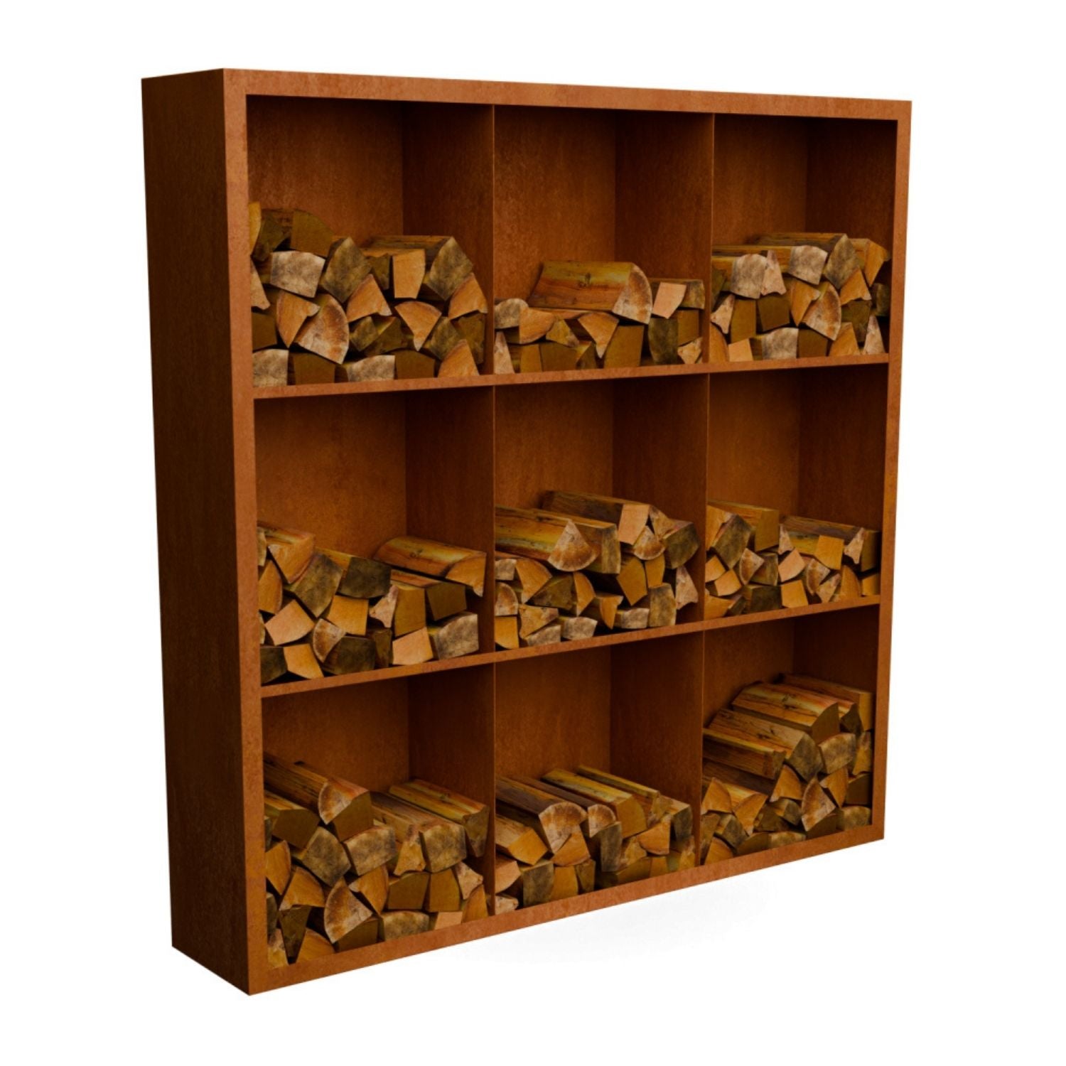 Cortenstalen houtopslag met 9 Vakken met achterwand 200x38,5x200 cm