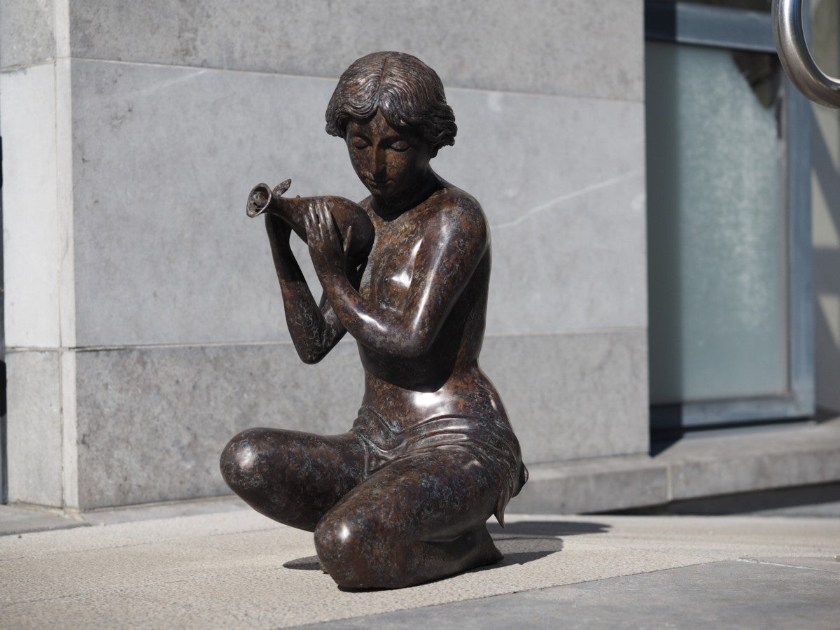 Avec la statue en bronze de la Femme agenouillée à la cruche (fontaine), vous choisissez non seulement une magnifique pièce pour votre collection, mais aussi un témoignage de l'éternité qui continuera de rayonner pour des générations.
